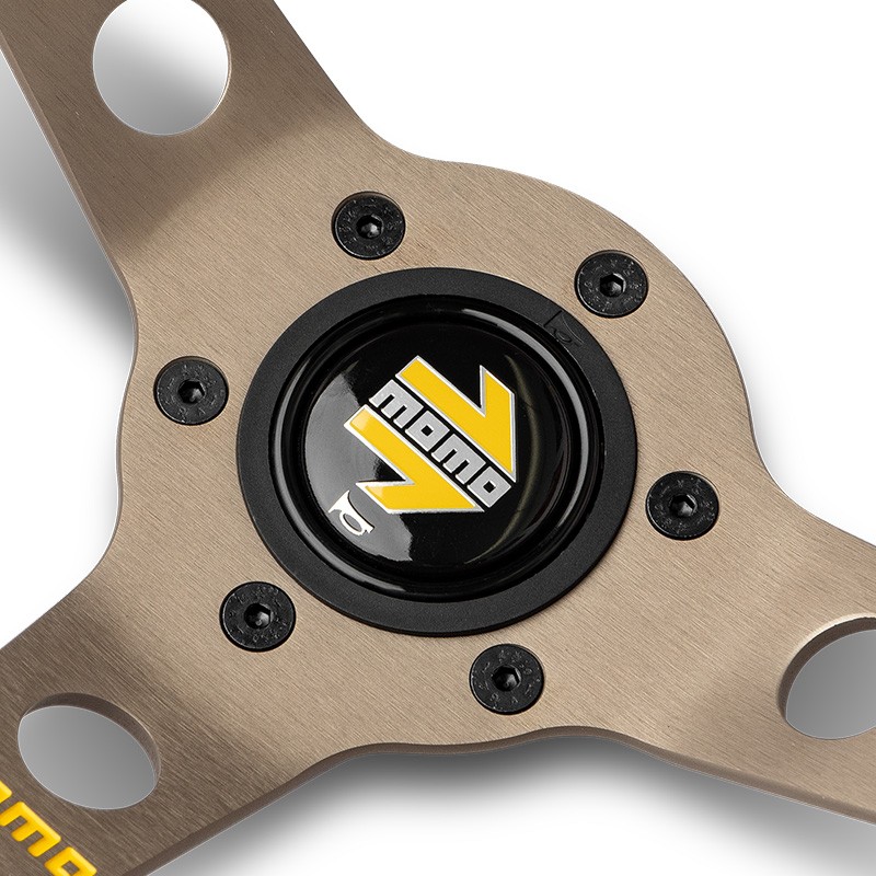 Volante MOMO INDY Anniversario, con diametro 350 mm e caliciatura 37 mm.